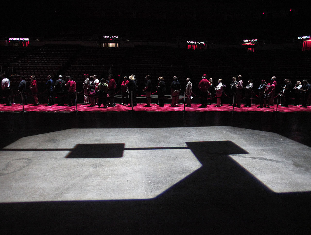 Once inside, the multi-generational crowd filed up to the stage, offering their condolences to the Howe family and their own personal tributes to the hockey legend.