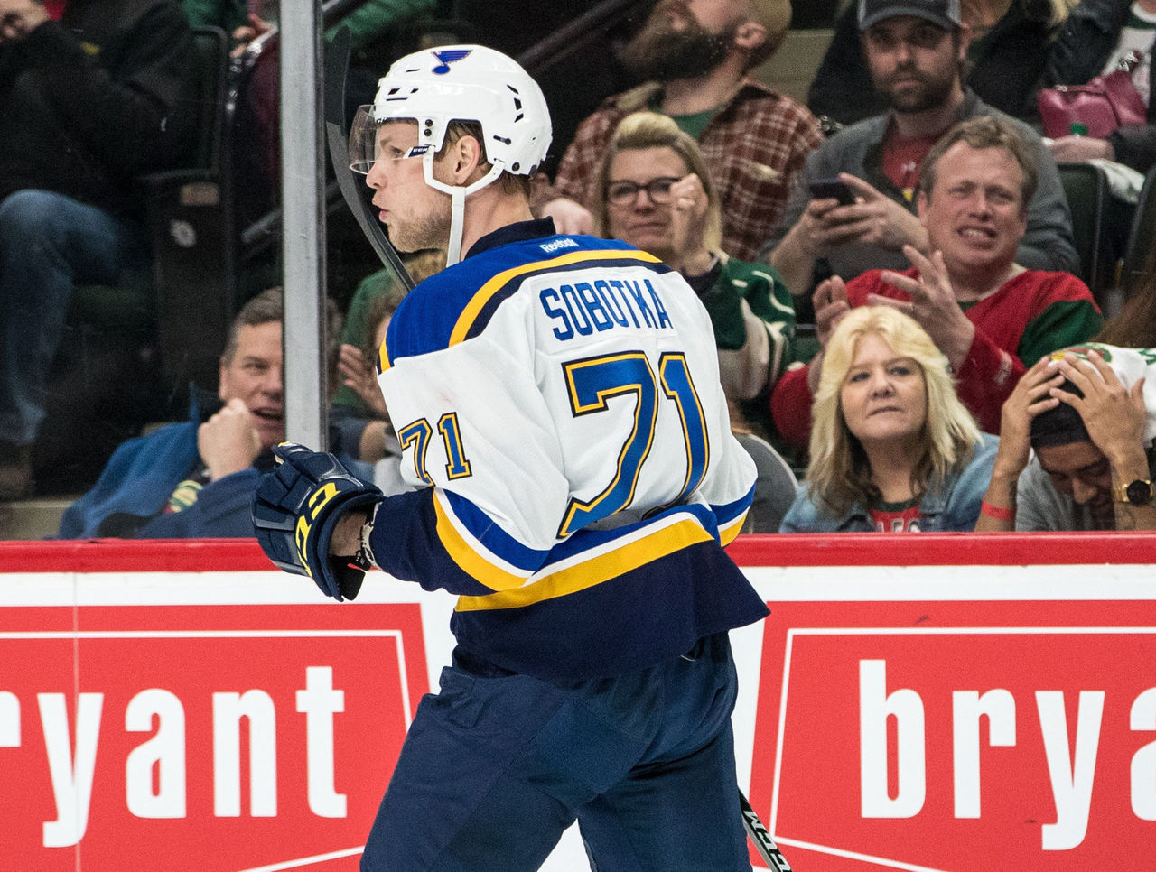 Sobotka scored a goal in his lone regular-season appearance, and went on to play a big role in St. Louis' win over the Wild.