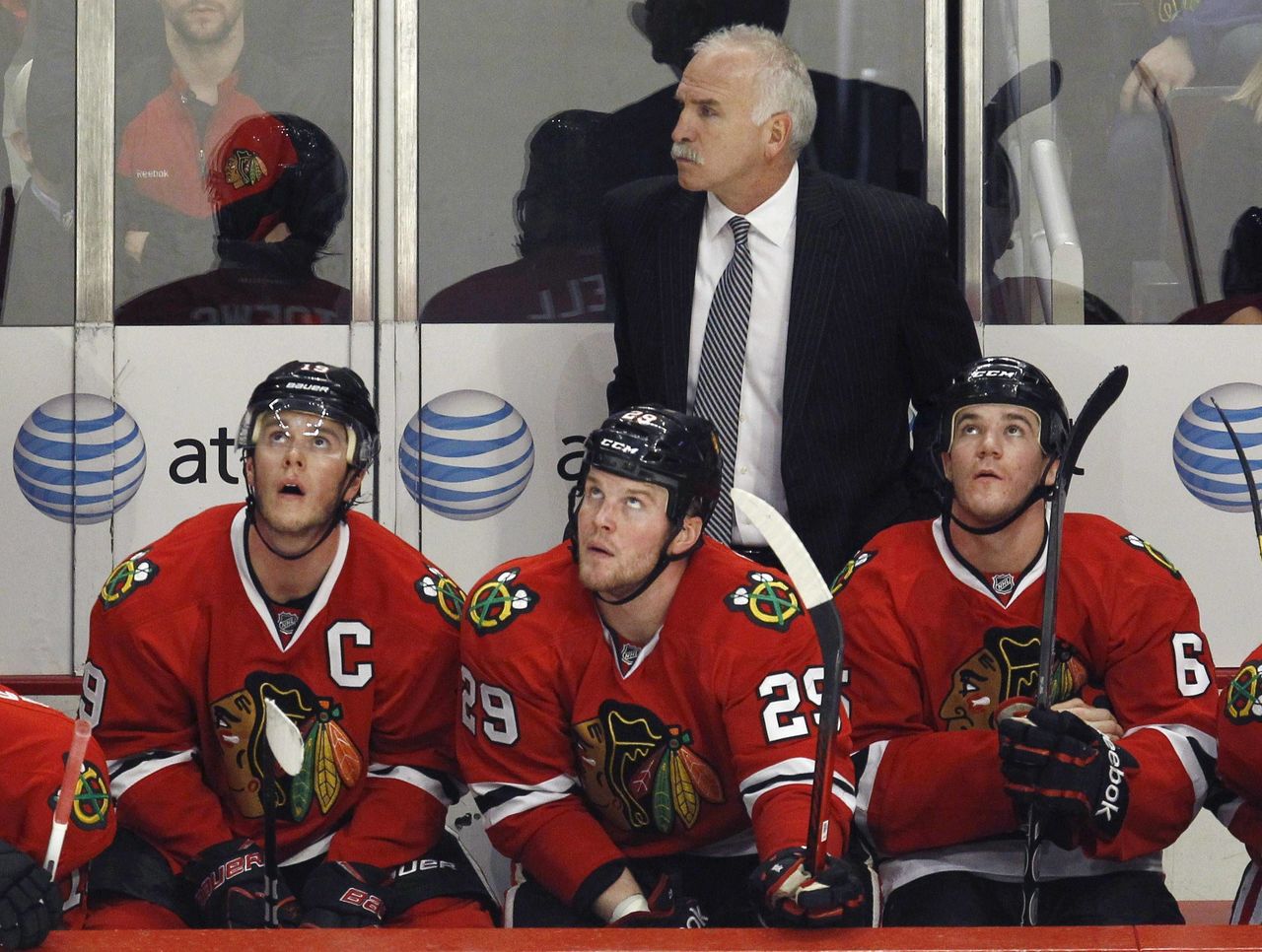 In the 2012 Stanley Cup playoffs, for the second consecutive year, the Blackhawks were eliminated in the first round in seven games. Toews' beard barely had time to get started, not that it would've mattered. Here's Toews, baby-faced, watching the seconds tick away on his season: