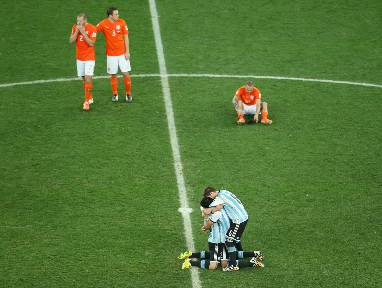 No last minute subs from Dutch manager Louis van Gaal this time—Sergio Romero was immense in goal, stopping shots from Vlaar and Sneijder. Though Dirk Kuyt bravely took a great penalty, it wasn’t enough to stop Maxi Rodriguez from putting Argentina through to the World Cup final.