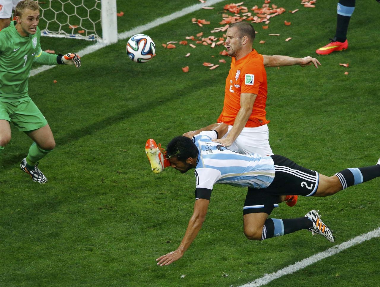 The Dutch had one successful pass into the Argentina penalty area, with coach Alejandro Sabella clearly keeping most his players back to neutralize any Dutch counter. There were very few chances on either end as a result.