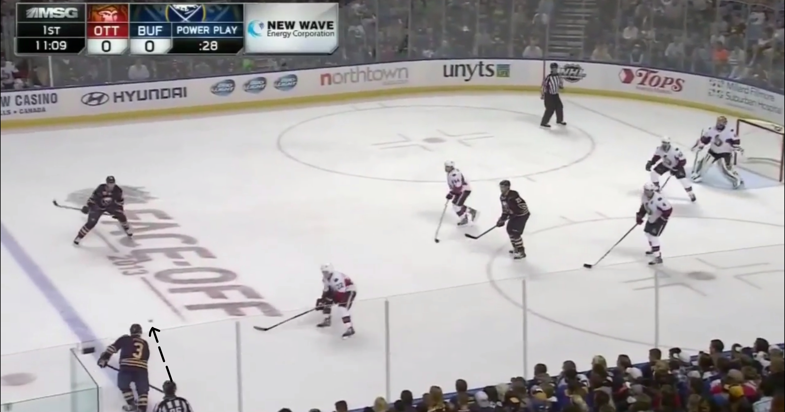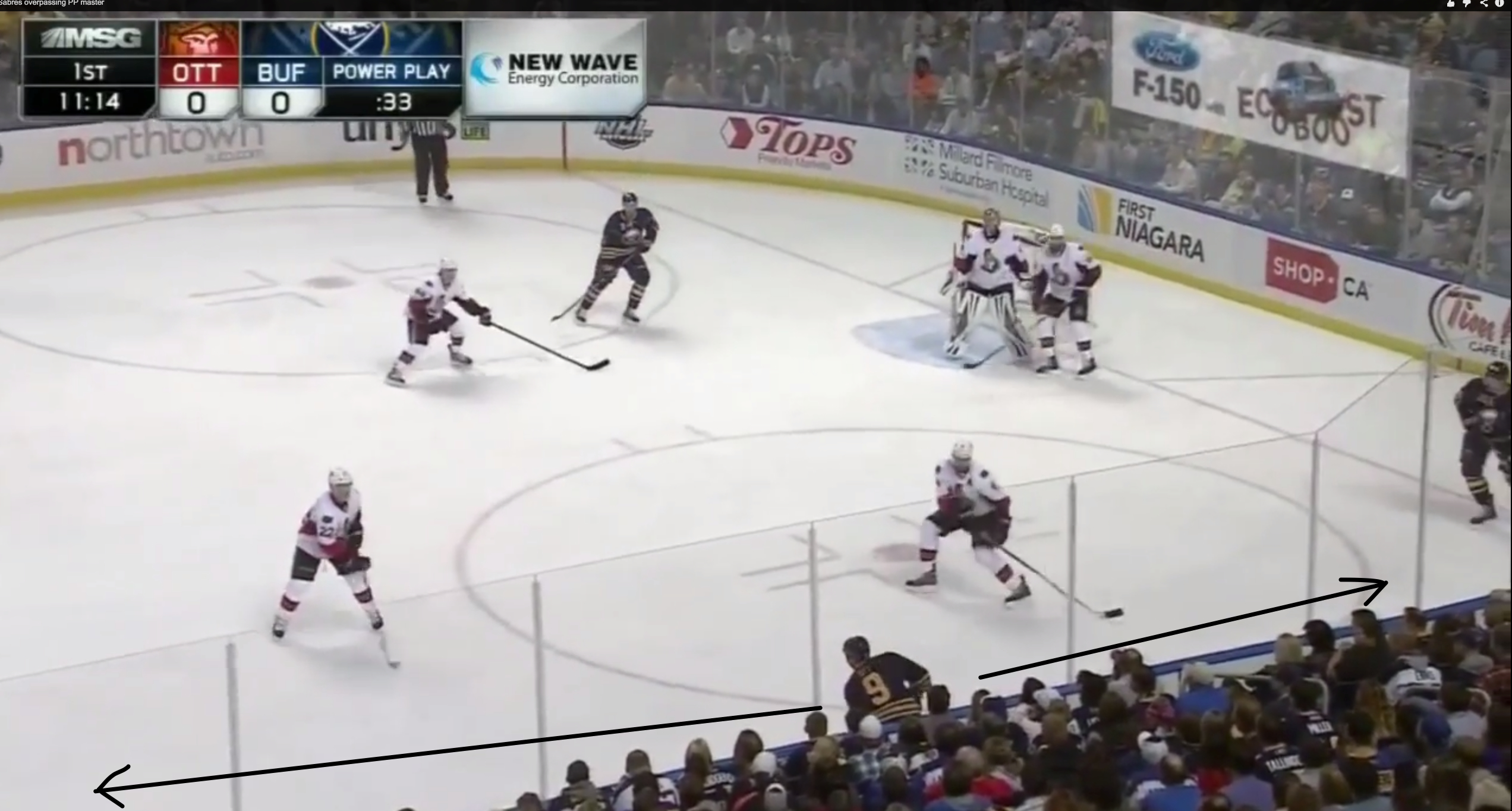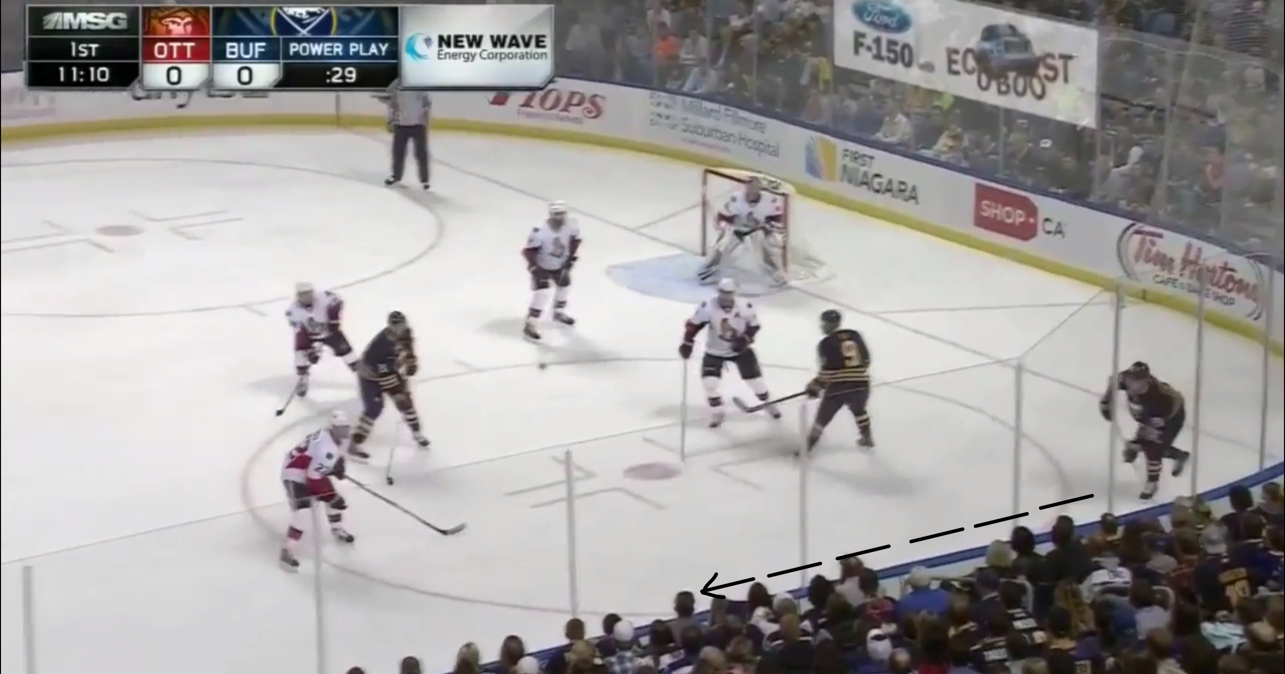 The overload is entirely ineffective unless the wall and low forwards threaten the box, which the Sabres rarely did. There has to be some attempts to attack, otherwise nobody ever gets pulled out of position, and nobody’s open.