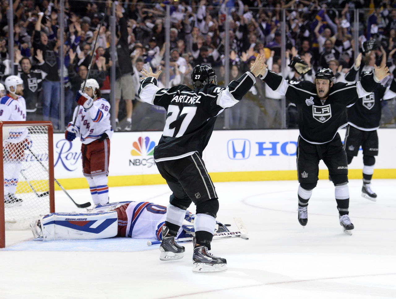 Los Angeles Kings defenseman Alec Martinez gobbled up a Lundqvist rebound in double overtime of Game 5 of the Final against the New York Rangers, giving his team its second Stanley Cup victory in the past three years.