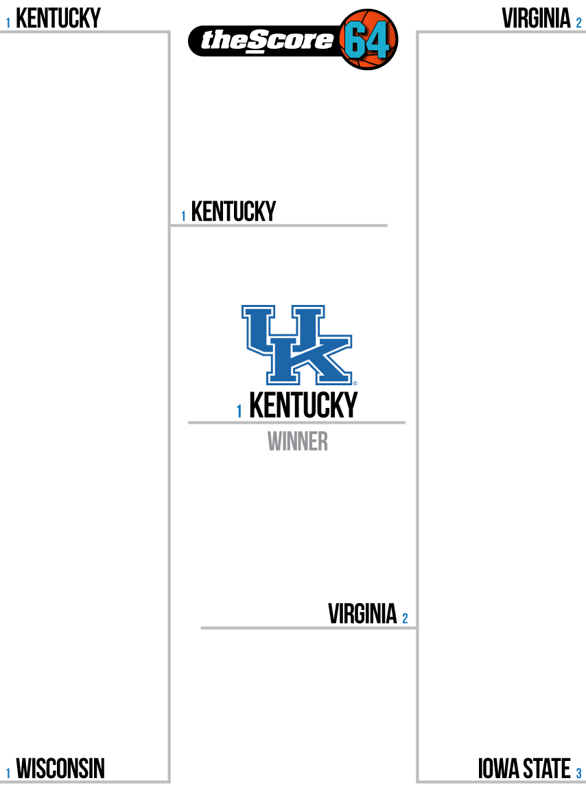 A Final Four rematch between the Wildcats and Badgers. Wisconsin's better than it was a year ago, but John Calipari's crew is leaps and bounds ahead of where it was then. ... Iowa State's offense versus Virginia's defense would be a very intriguing battle of opposing forces. The Cavaliers can score better than the Cyclones can defend. ... Kentucky hit some stumbling blocks against lesser competition during its SEC schedule, but the Wildcats have handled the step up in class very well. In three games against opponents ranked inside the top 10 of the AP poll, Kentucky won by an average margin of 17.3 points, and in 13 games against tournament teams, the Wildcats won by an average margin of 15.4 points.