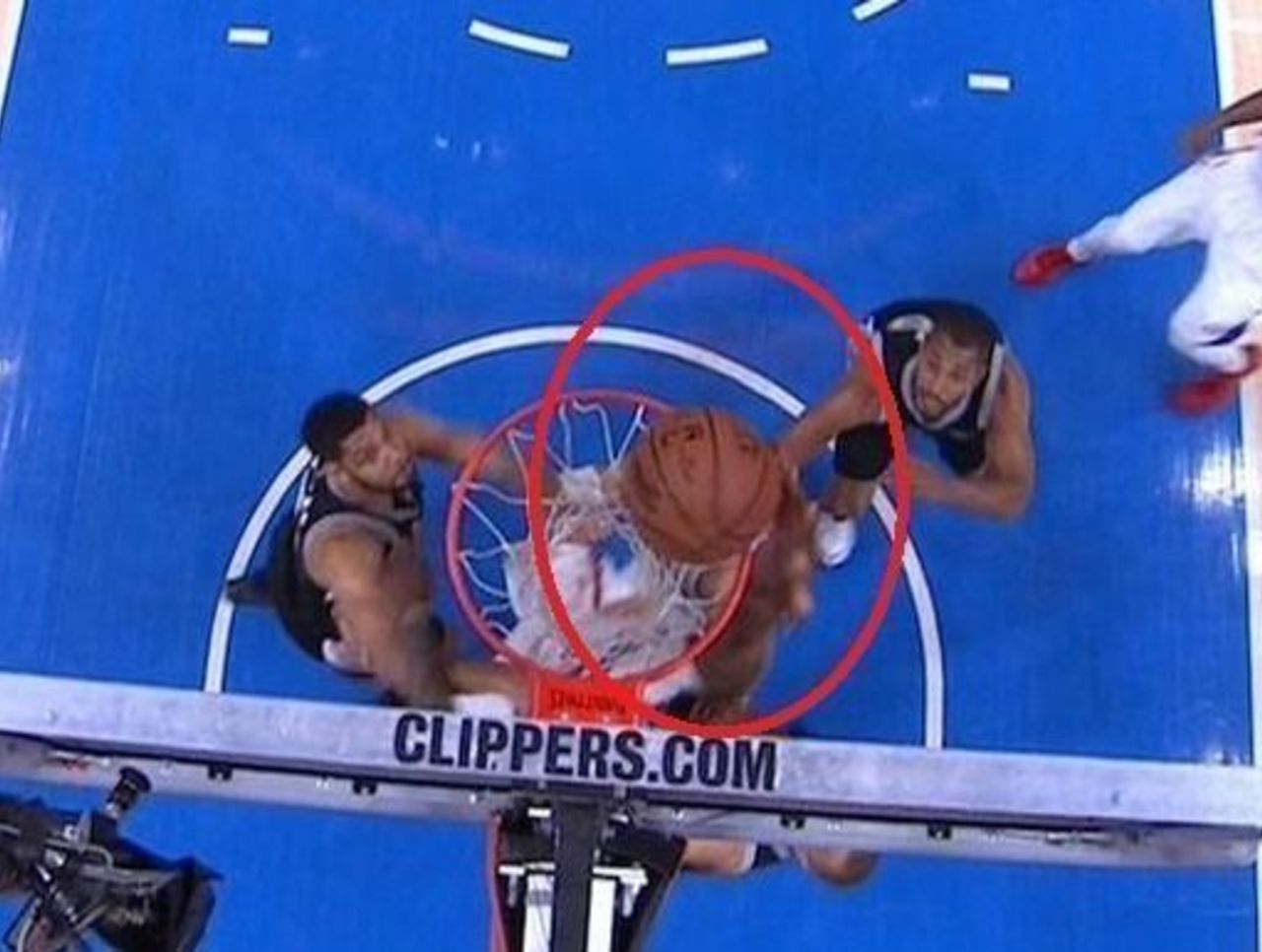 It appears to have been the correct call, and from there the usual late-game fouling game played out in San Antonio's favor. What's worse, the ball may have been bouncing back in without Jordan's help: