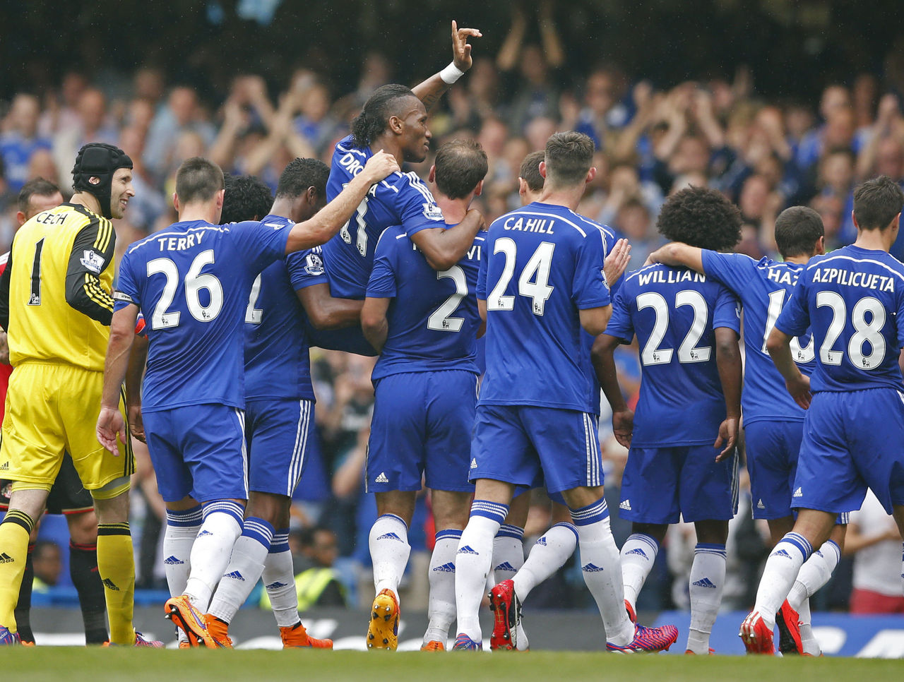 With silverware practically falling out of his pockets, Drogba's teammates ensured he received a proper send-off upon being replaced by Diego Costa in the 30th minute and carried him toward the touchline as applause echoed around Stamford Bridge.