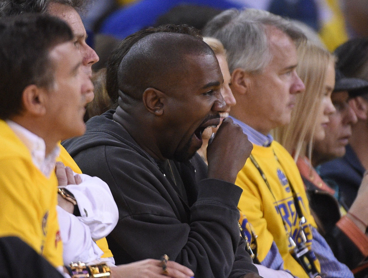 It wasn't just Lil B who turned out for the huge game, as Warriors co-owner Peter Guber hosted Kanye West as his special guest. West wasn't impressed with the Warriors' cold start, but not even the ever-stoic Yeezus could help showing Steph Curry some eventual appreciation.