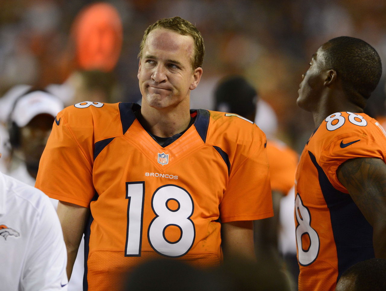 Manning's go-to look is the scowl. It's hard to imagine Manning being at fault for most of his picks and the disdain is likely reserved for receivers who ran the wrong route. It appears Demaryius Thomas might be on the receiving end of this one. Manning's not mad, he's just disappointed.