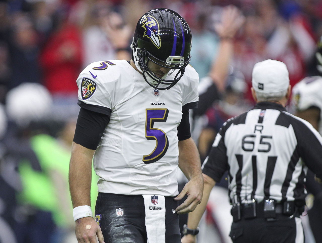 Flacco likes to stare down at his shoes when things turn bad. His only comfort is going home to sleep on a big pile of money after signing that $120-million contract extension.