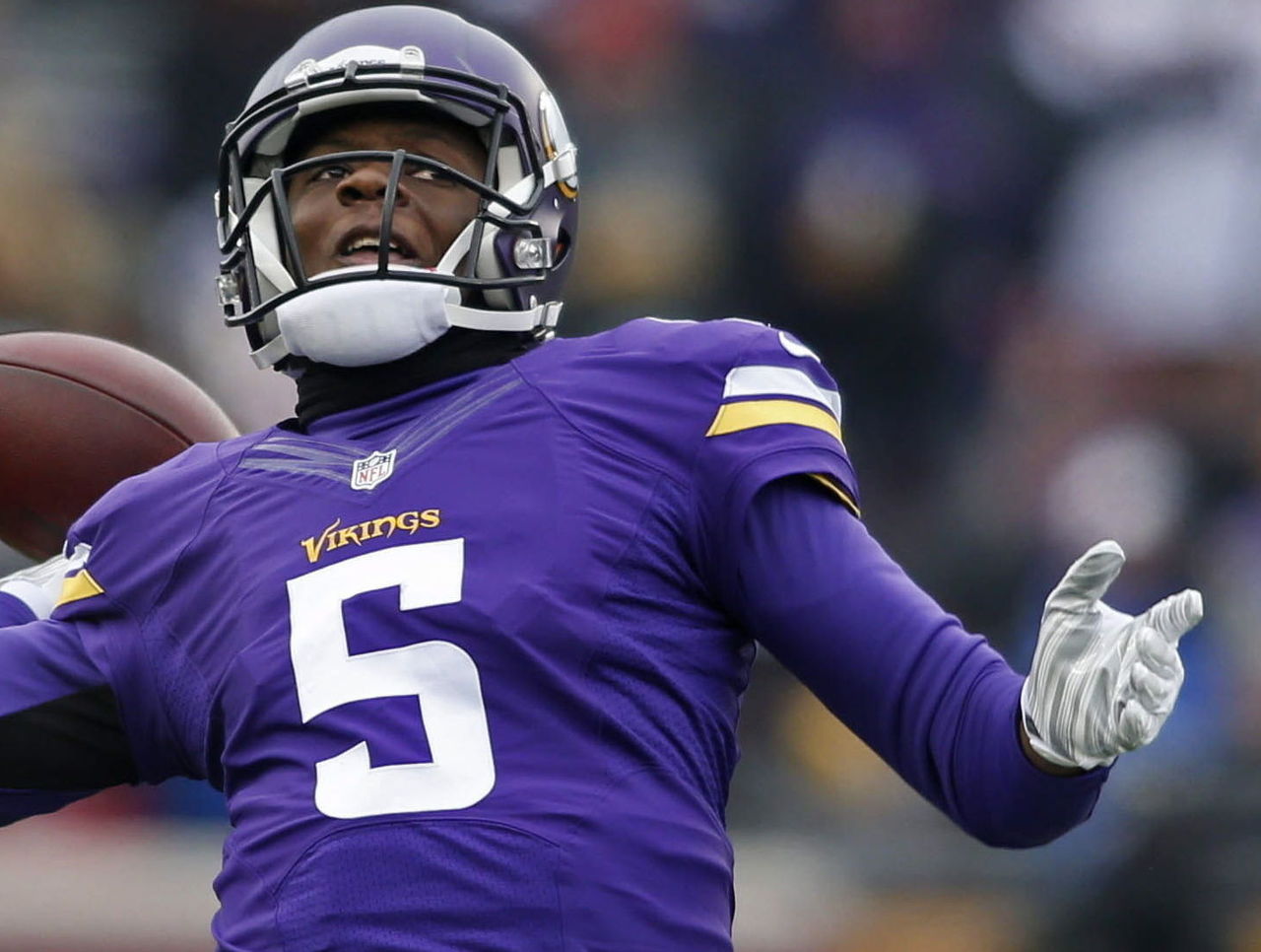 Since Bridgewater is only 22 and not an interception machine, it was hard to find a good shot of him reacting to a pick. This throw, though, was ultimately picked off, and looking into his eyes, it's almost like he knows his fate before the ball leaves his hand.
