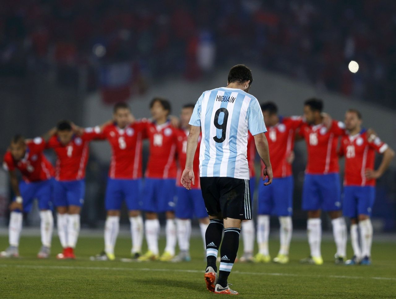After Matias Fernandez and Arturo Vidal converted their penalties, Gonzalo Higuain - who had missed a tight-angled shot in the 92nd minute that was arguably Argentina's best chance of the game - embraced the role of scapegoat once again and rocketed his shot into the sky.