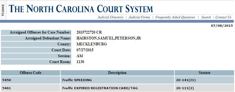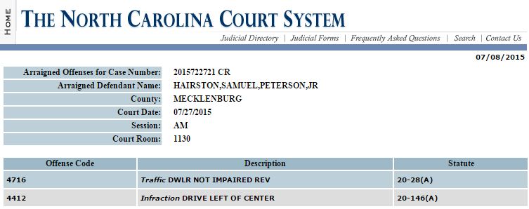 Hairston is facing a July 27 court date after being cited for four traffic offenses: Speeding, driving with expired registration, driving left of center, and driving with a revoked license. The offenses occurred June 18, the Mecklenburg County clerk of courts spokeswoman told Kami Mattioli from The Sporting News.