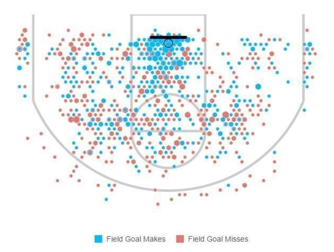 It's the rest of the area beyond the arc that's posed the issue, as this past season's shot chart indicates.