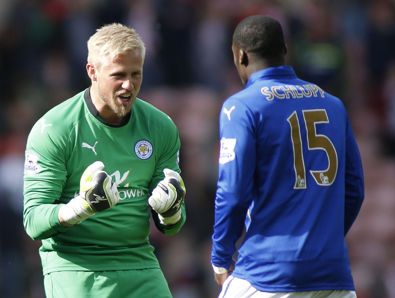 Kasper Schmeichel; Christian Fuchs, Robert Huth, Wes Morgan; Jeff Schlupp, Riyad Mahrez, Marcin Wasilewski, Marc Albrighton; Jamie Vardy, Leonardo Ulloa