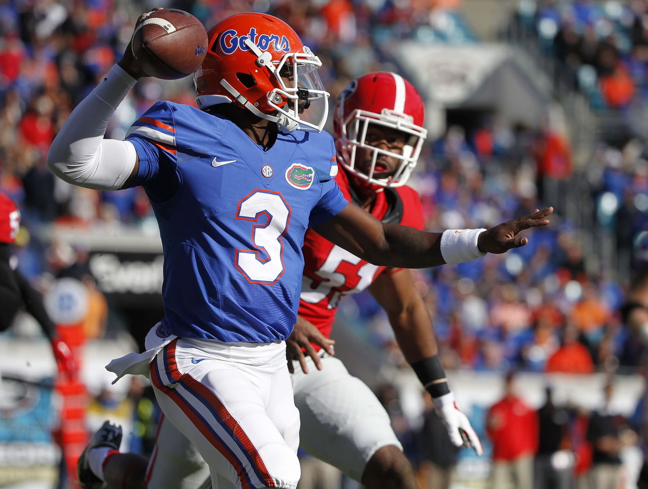 Grier, a former high-school standout at Davidson Day School outside of Charlotte, N.C., has the kind of measurables McElwain values in a quarterback. At 6-foot-2, the highly accurate redshirt freshman excels at throwing on the run. Since the Gators return just one starter along the line and intend to start a true freshman at right tackle, throwing on the move may be a necessity. Grier's biggest challenge will be acclimating to operating under center after an entire high-school career taking snaps in the shotgun.