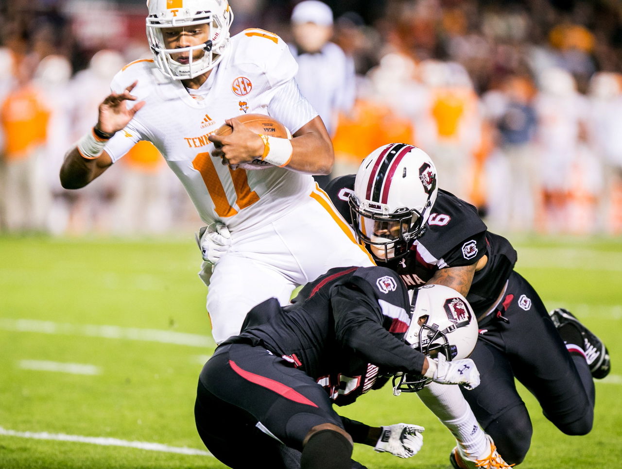 Despite the recent loss of senior guard Marcus Jackson, optimism in Tennessee is higher than ever with 17 starters returning this fall. Joshua Dobbs shed his redshirt midway through last season and led the Vols to an impressive 4-1 finish, including a blowout bowl win over Iowa. The aerospace engineering major will be putting plenty of footballs into orbit next fall with eight players returning who snagged double-digit passes in ‘14.