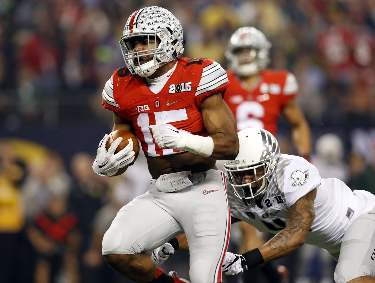 Though Jones's sample size for game reps is small, it's beyond impressive: Cardale threw for over 200 yards in the Buckeyes' three most important games last season. What's more, he used his linebacker build to punish defenders, picking up important third down conversions against Alabama and Oregon in the College Football Playoff. His effortless ability to launch a ball accurately 60 yards gives Ohio State a new dimension it can use to stretch defenses out, making them more susceptible to running plays.