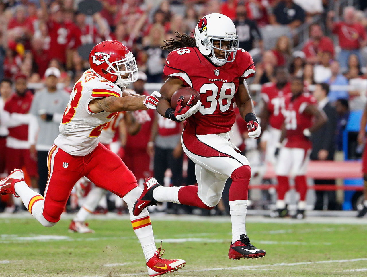 Rookie David Johnson only saw the ball once in Week 1, but made it count, taking a catch 55 yards for a touchdown. He'll of course see more actual rushing work with Ellington out, and should emerge as the better fantasy option, though Chris Johnson may get a longer leash against the Bears to start with.