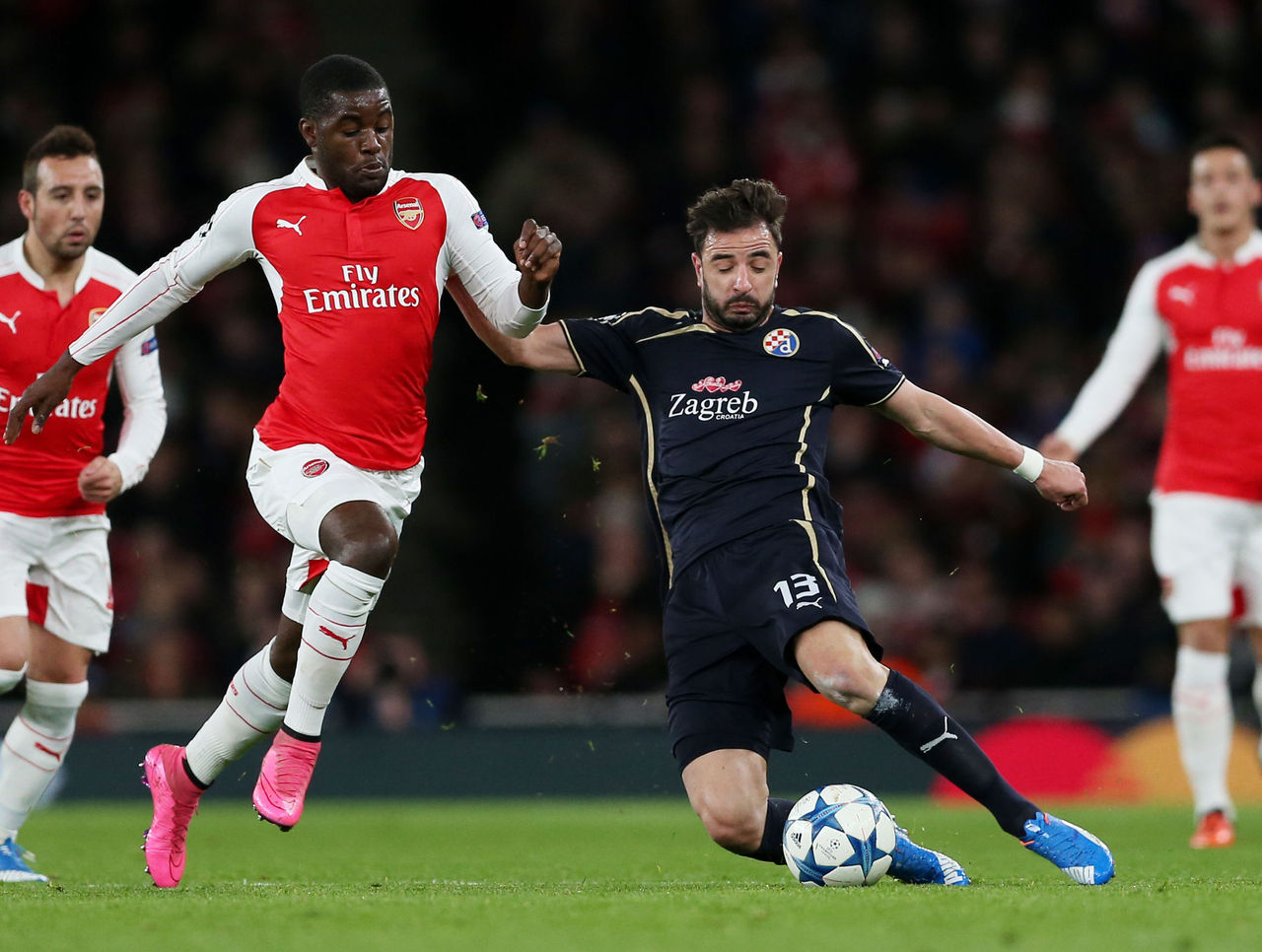 The match was virtually put out of reach less than five minutes later when a dreadful giveaway helped Arsenal double its lead. Nacho Monreal gathered the poor clearance attempt at the top of the Dinamo box before bursting towards goal and laying a pass off to Sanchez at the penalty area for the easy finish.