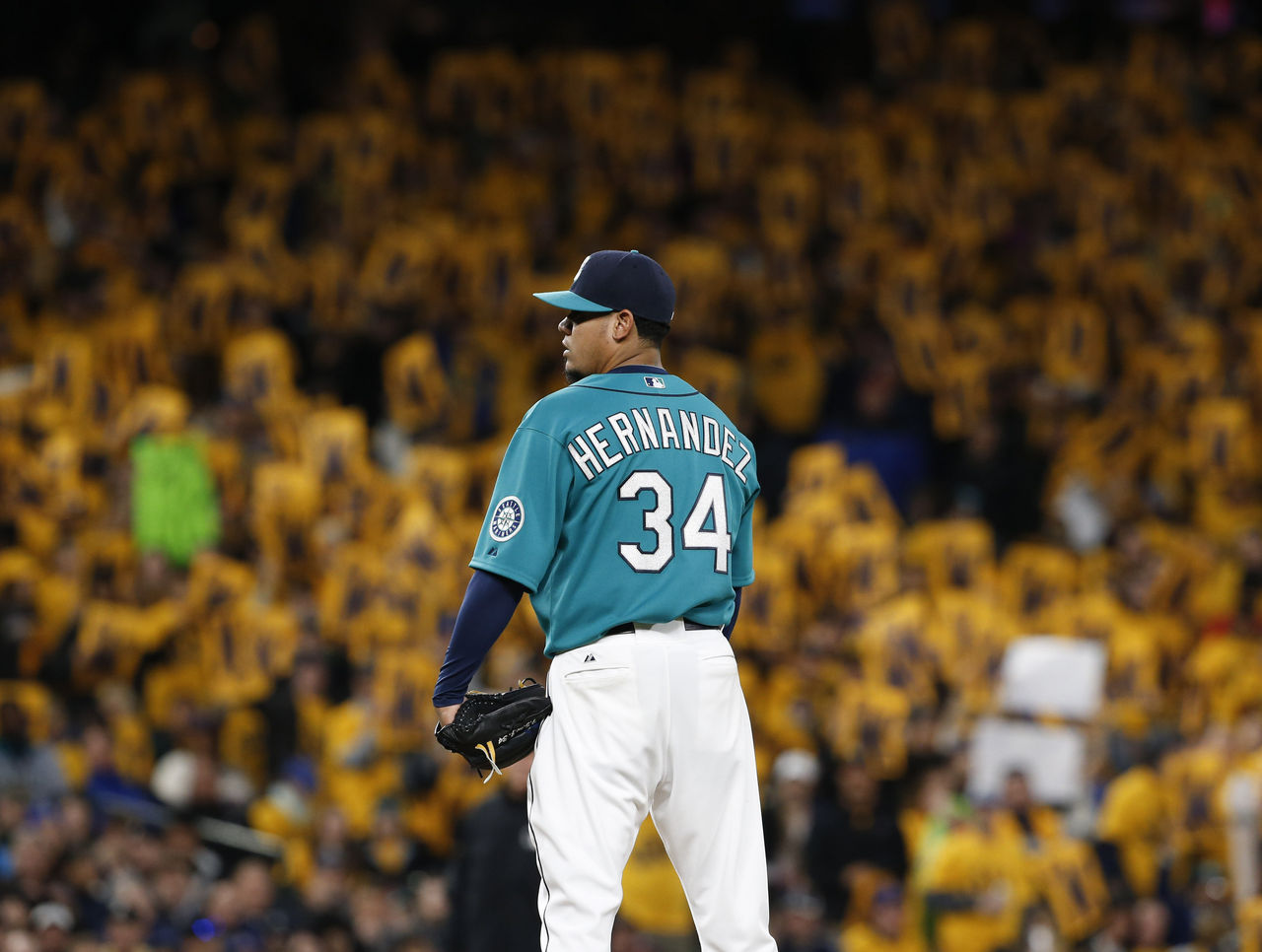 April 25 - Felix Hernandez pitches in front of the King's Court in Seattle. The six-time All-Star is 77-50 for his career at Safeco Field.