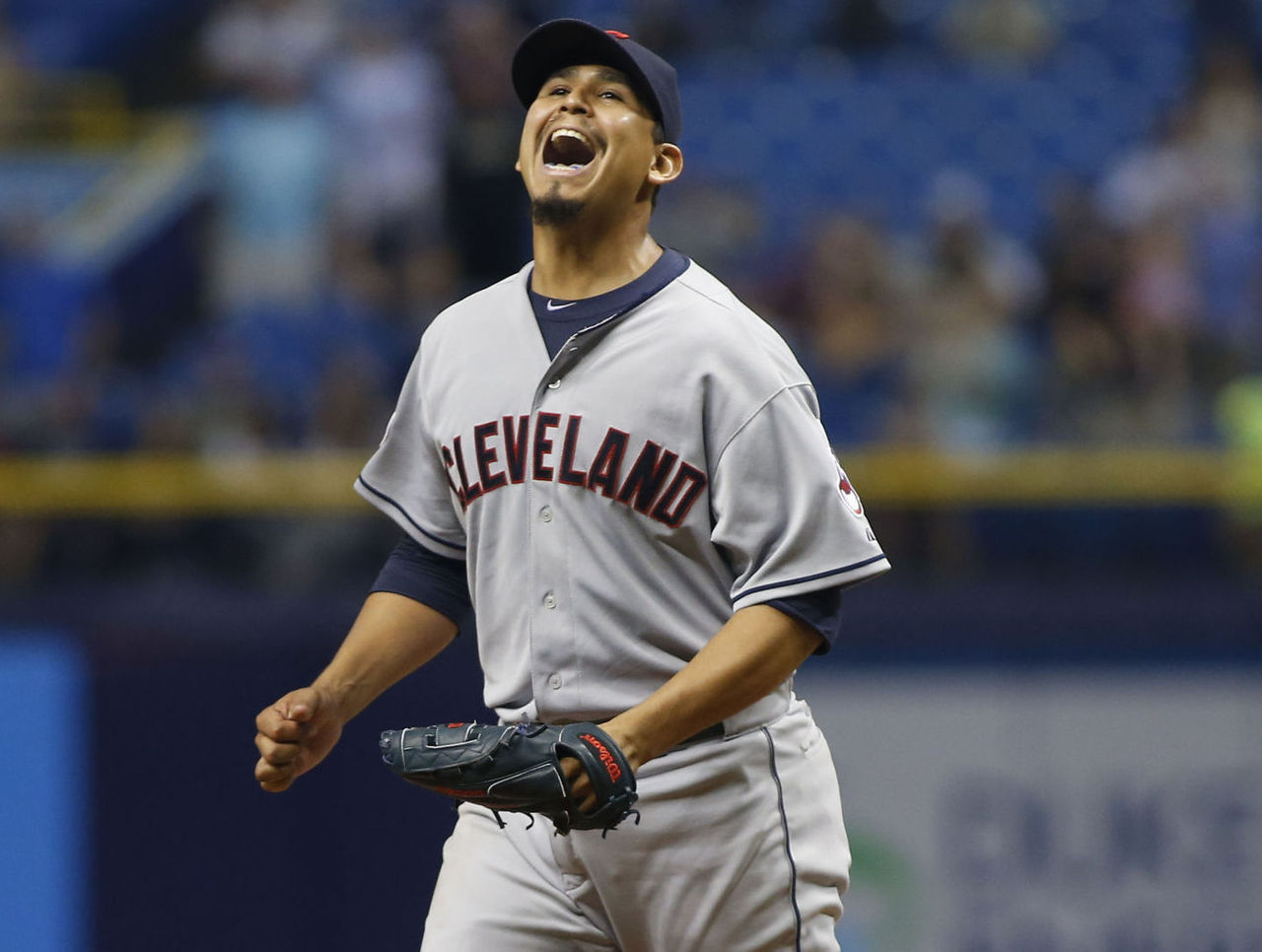 July 1 - Carlos Carrasco can't help but smile despite losing his no-hitter against the Rays with two outs in the ninth inning.