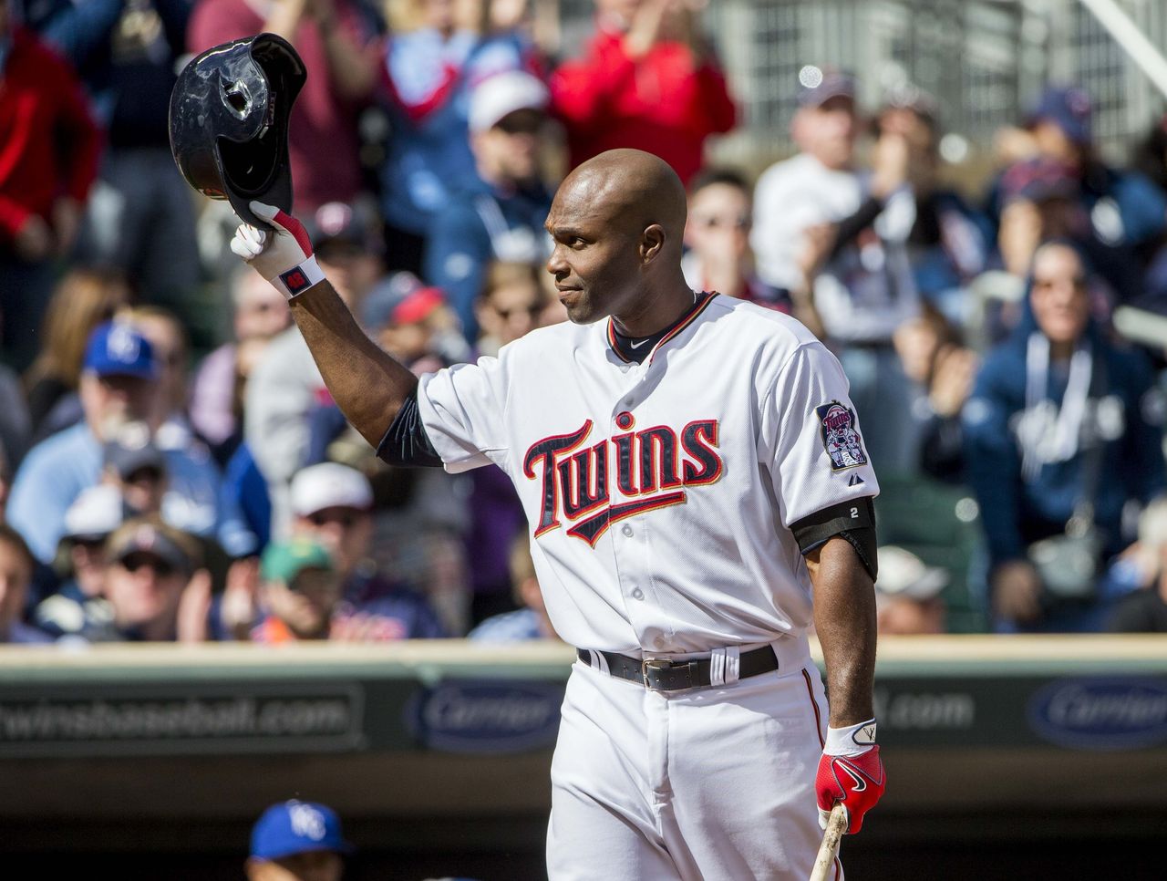 April 13 - Torii Hunter tips his cap during his first home game following his return to Minnesota. He retired in October after 19 seasons.