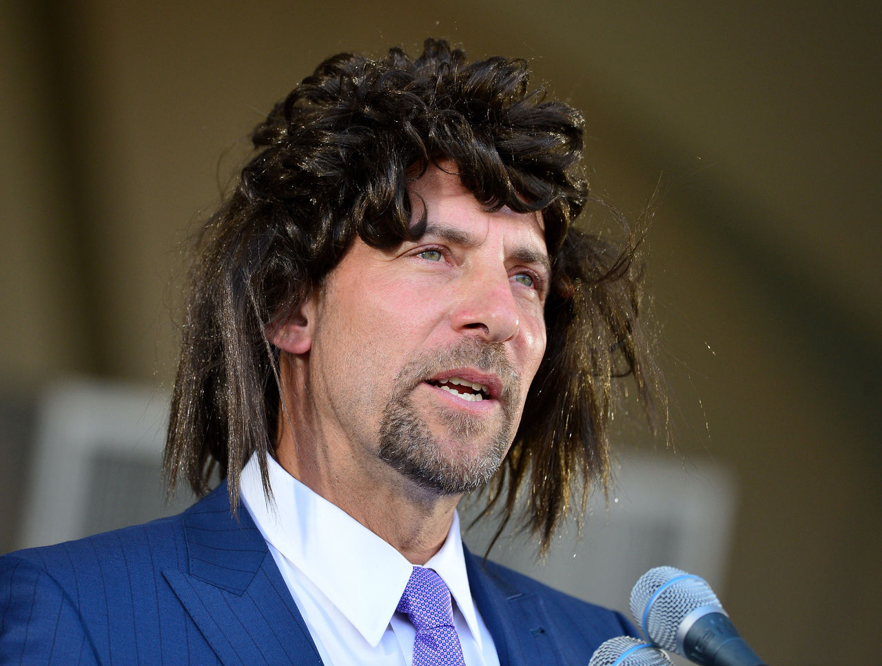 July 26 - John Smoltz wears a wig for part of his Hall of Fame speech to prevent former teammates Greg Maddux and Tom Glavine from talking about his bald head.