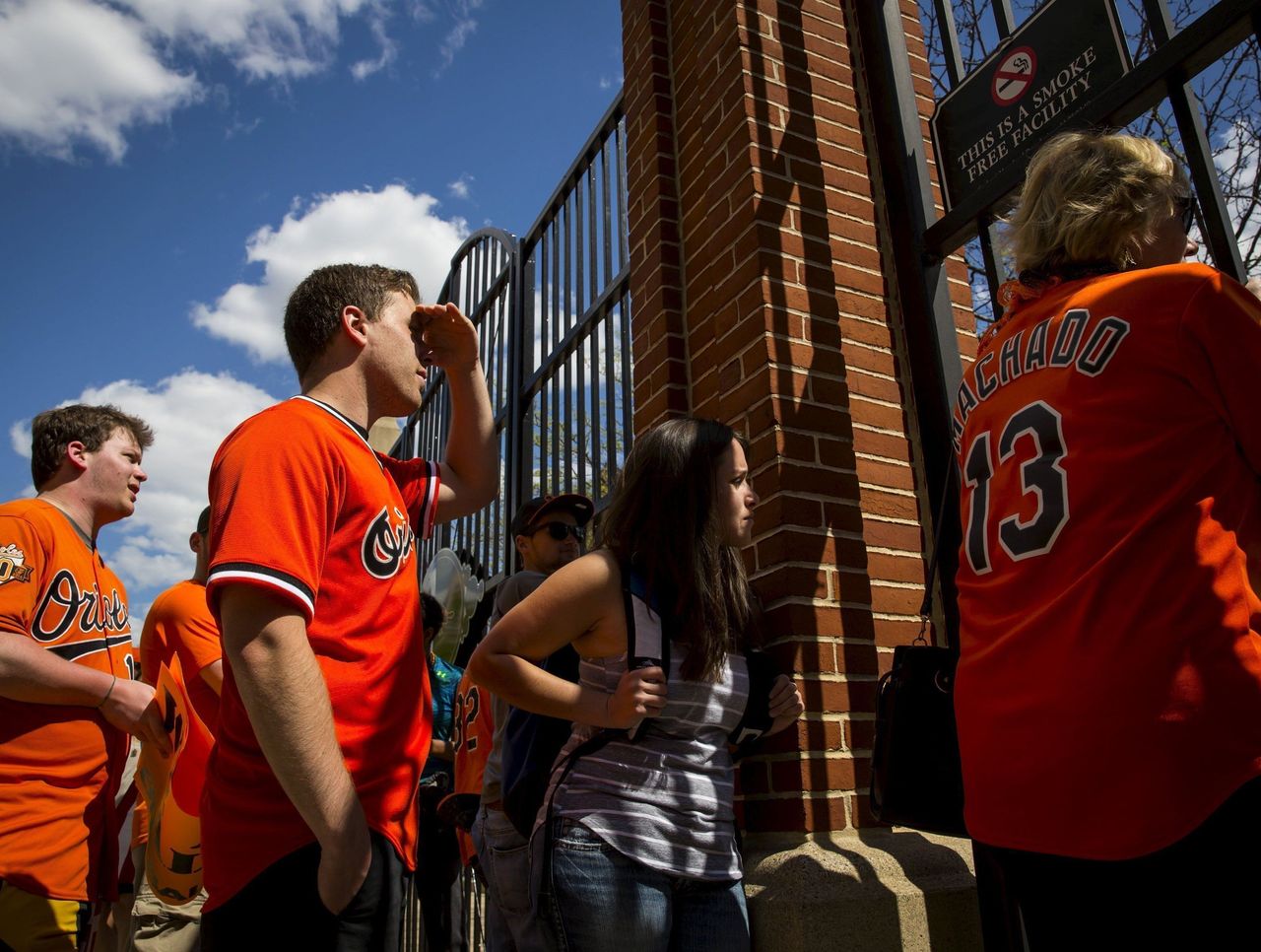 April 29 - Locked-out fans watch from behind a gate at Camden Yards as the Orioles and White Sox play in a closed stadium amid rioting in Baltimore.