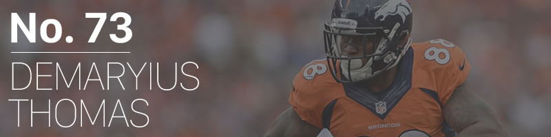 The Broncos' top target overcame shaky quarterback play to eclipse 1,300 yards for the fourth straight year. Thomas fills the stat sheet like a star receiver, but despite his lofty totals, he struggled with drops this season and even disappeared at times. He'll need to take over more games in order to remain in the conversation as one of the elite players at his position. - Boone