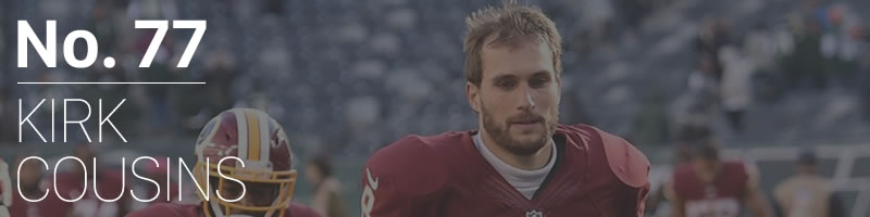 Cousins kick-started the Redskins' offense early in the season and closed out the year with 11 touchdowns and no interceptions over the last three games. Whether you believe he's a talented passer or simply a product of Jay Gruden's system, it's impossible to overlook his league-leading completion percentage or his 29 touchdowns. - Boone