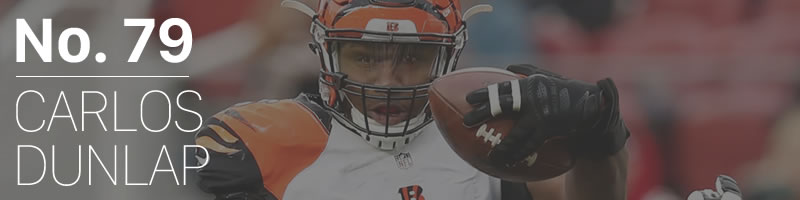 Playing alongside a star defensive tackle, Dunlap gets lost in the shuffle at times. He possesses multiple moves at the line of scrimmage, making it difficult for tackles to judge his plan of attack. Finally harnessing his rare combination of speed and size, Dunlap will no longer sneak up on opponents and is poised for true stardom in 2016. - Srinivasan
