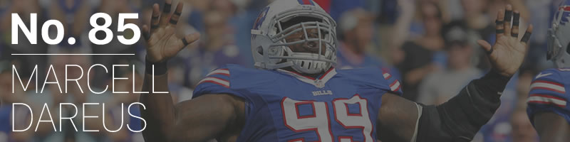 Although the Bills' defense regressed badly in 2015, Dareus starred as one of the best run-stoppers in the NFL. He remained relentless in pressuring passes, even if his raw numbers belie his impact against opposing quarterbacks. Possessing outstanding lateral ability for a man his size, Dareus is the core component of the Bills' talented yet erratic front seven. - Srinivasan
