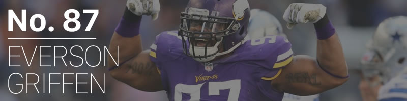 Griffen led the Vikings in sacks, tackles for loss, and quarterback hurries for a second straight season. His best game came on the biggest stage, when he recorded two sacks to lift his team to a Week 17 win and a division title. - Woods