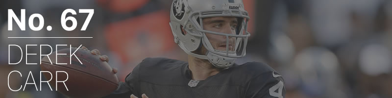 Carr made significant strides in his development as a sophomore after showing flashes throughout an up-and-down rookie season. The impressive production was rewarded with his first career Pro Bowl nod. He now appears to be a clear step ahead of the other quarterbacks in the 2014 class. The Raiders may finally have their long-term answer under center. - Wilkins