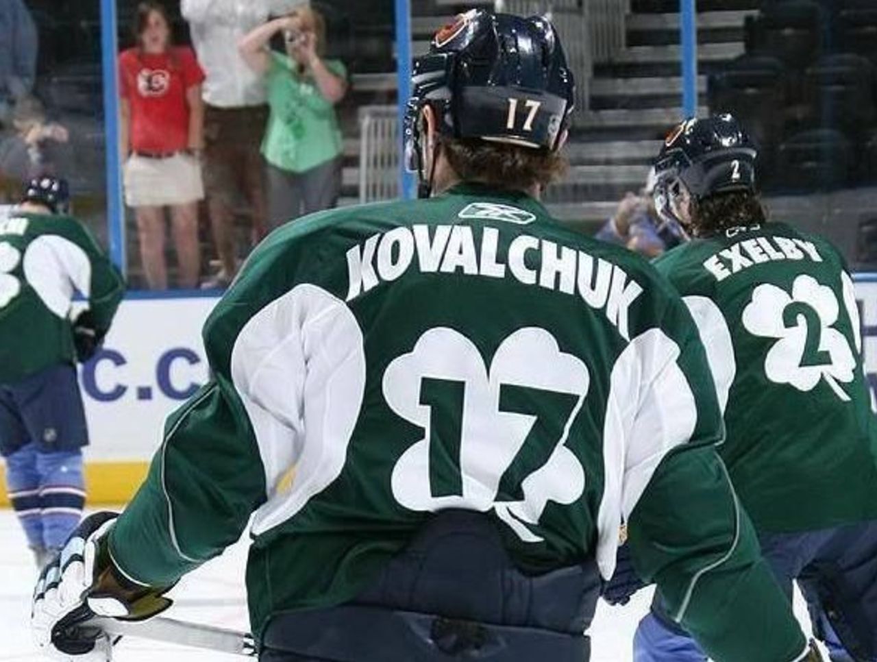 While not a lot went right for the team, they at least looked good when they took the ice, whether it be in their baby blues, or these stylish St. Patrick's Day warmup jerseys with a four-leaf clover surrounding the number.