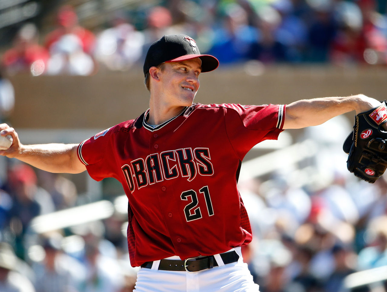 The Diamondbacks' new ace, signed to a $206.5-million, six-year contract, gave up one hit and struck out two - Sam Fuld swinging in the first and Andrew Lambo looking to end the second.