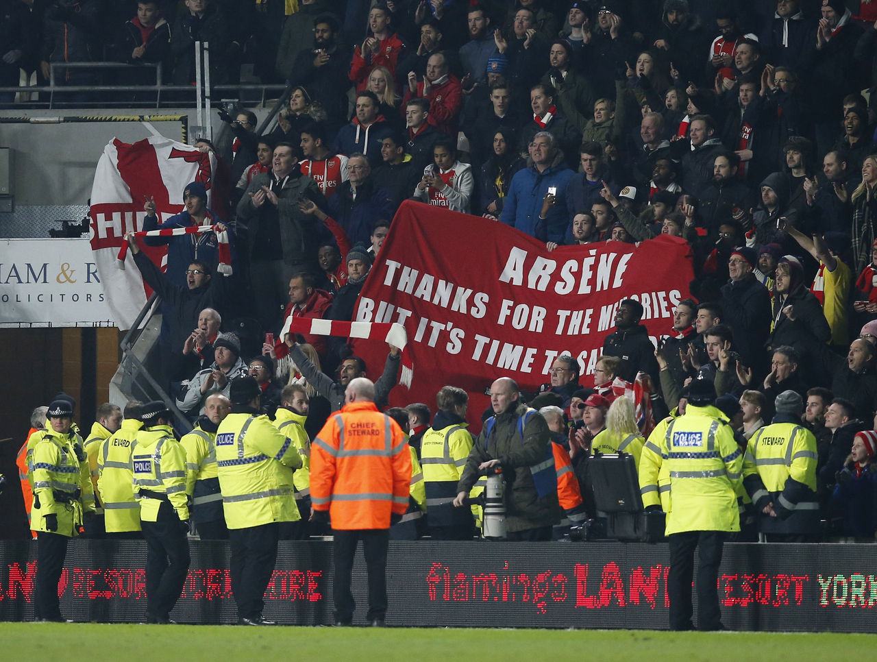 Arsenal's run of poor results in the Premier League has once again triggered an angry response from some supporters of the North London side, with tempers reaching a boiling point ahead of a 4-0 FA Cup victory over Hull City on Tuesday when a fan unfurled a banner that read: "Arsene, thanks for the memories but it's time to say goodbye."