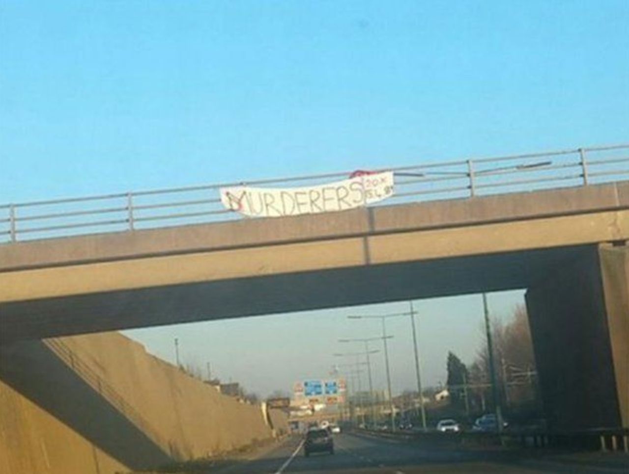 Many Liverpool fans were also welcomed by a "murderers" banner en route to Old Trafford before Thursday's second leg, the Hillsborough reference scrawled onto a sheet hanging on a bridge over the M602 in Salford.