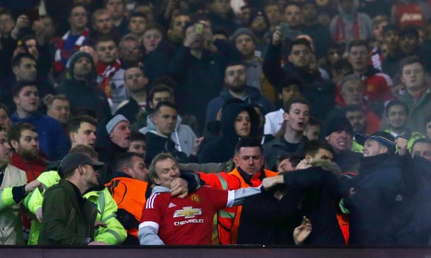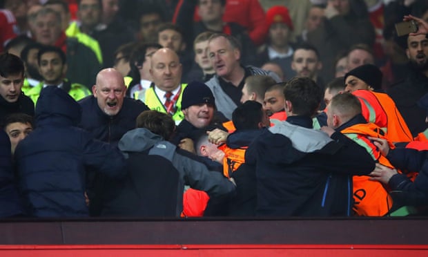 The Guardian reports that angry scenes toward the end of the match were sparked by away fans situated in the home support unfurling a banner. Some sections of the travelling Liverpool support then began chanting "Munich," referring to the deadly plane crash of 1958, while fights broke out and seats were thrown.