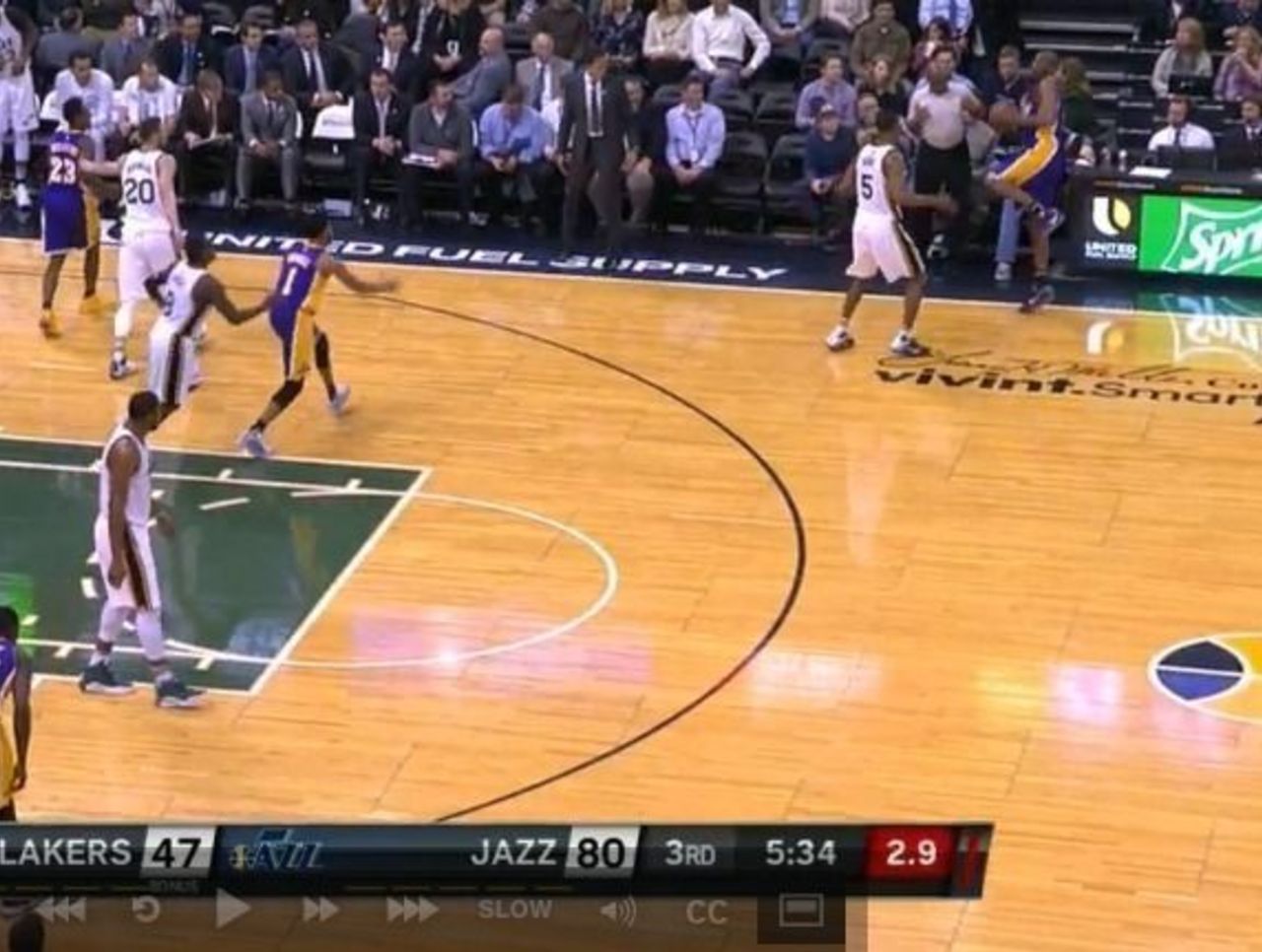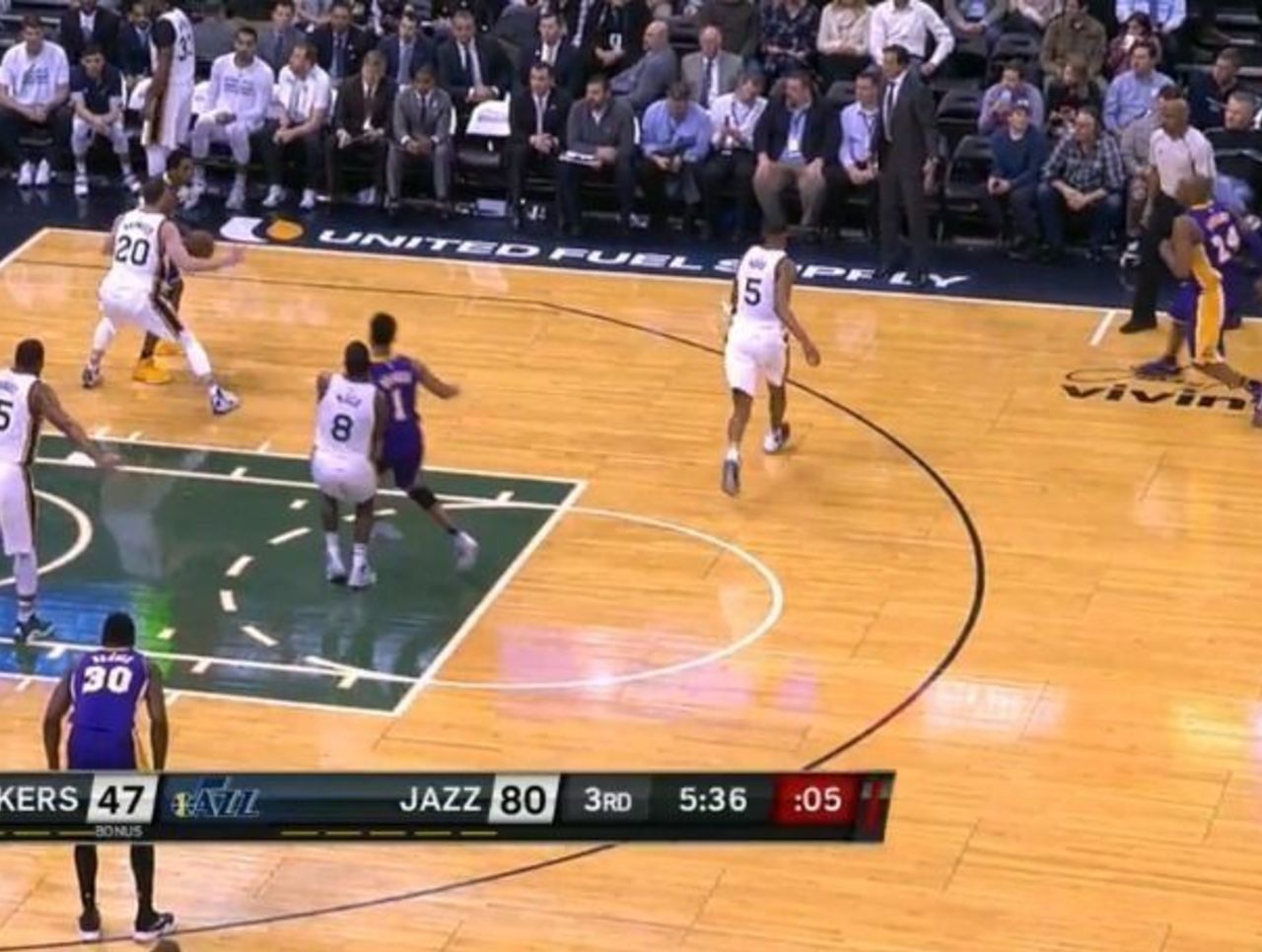 Williams instead sailed a pass to Kobe Bryant, who was standing a good six feet behind the 3-point line, and this is the shot that ensued: