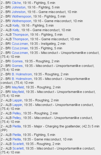 Saturday's game was Albany's regular-season finale, meaning any potential suspensions would begin in the playoffs, while Bridgeport still has one game remaining - on Sunday afternoon - before their postseason begins.