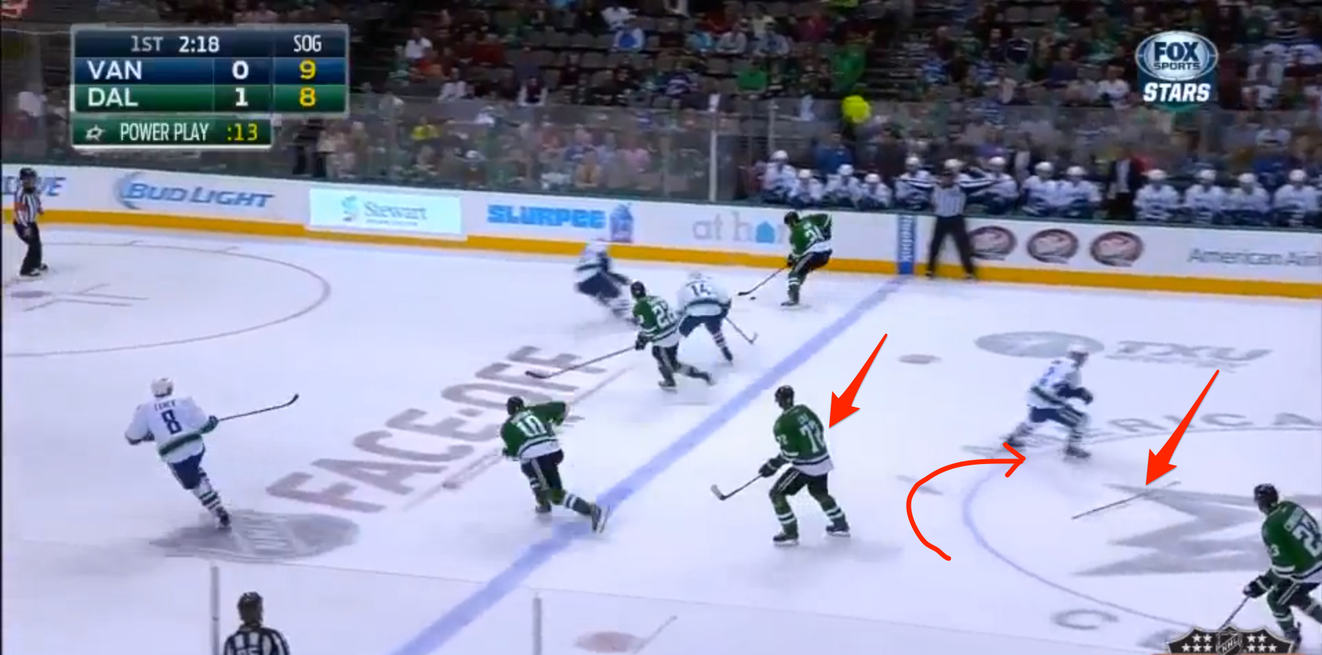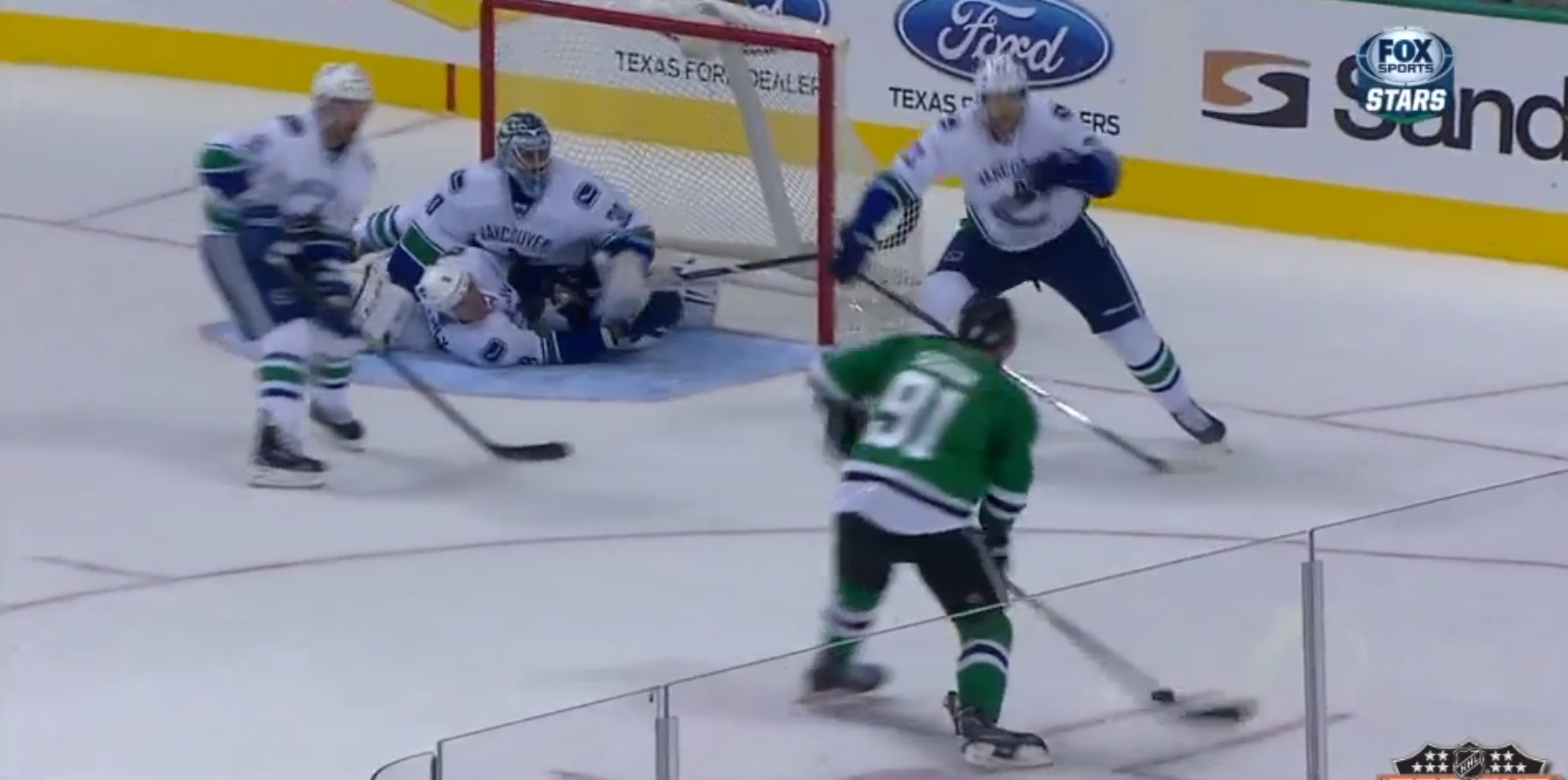 I legitimately don’t know if I would’ve had the killer instinct to mash that puck the way Seguin did on this goal, given the bodies strewn about the crease. I feel like he could’ve killed Tanev.