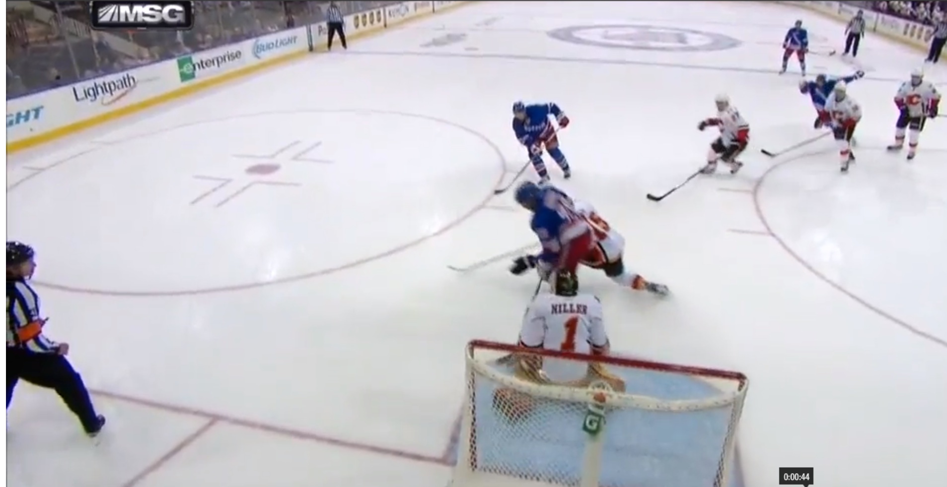 The Rangers got the puck in, got solid possession, and made the Flames defenders make some choices. From where I sit as a former winger, they defended pretty damn well. They just got some bad luck.