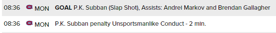 During the ensuing celebration, Subban appeared to hear something he didn't like so he shoved Brandon Dubinsky, earning two minutes in the box for unsportsmanlike conduct.