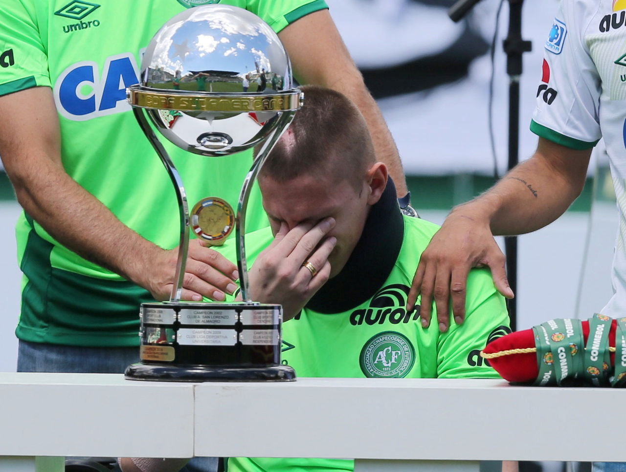 Before the friendly kicked off, the three players to survive the plane crash took the pitch and, in an emotional scene, lifted the Copa Sudamericana trophy. It was en route to the first leg of the final in Medellin, Colombia that the tragedy unfolded, and Atletico Nacional requested to CONMEBOL that Chapecoense be crowned champion of the tournament. South American football's governing body obliged.