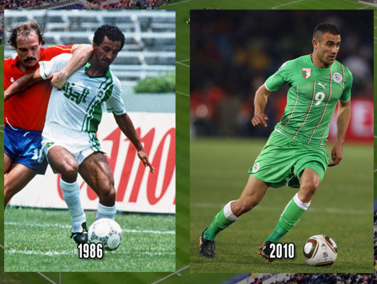 Algeria has gone green and white in each of their four World Cup appearances. In the 1986 tournament in Mexico they went a little astray from this by wearing an all red secondary uniform without any green whatsoever.