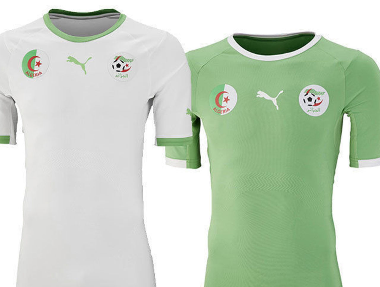Algeria is going with a very basic uniform design for both their primary and secondary jerseys. The primary is white with light green accents around the collar and sleeves with the national football federation logo and a general "Algeria" graphic surrounding the Puma symbol on the chest.