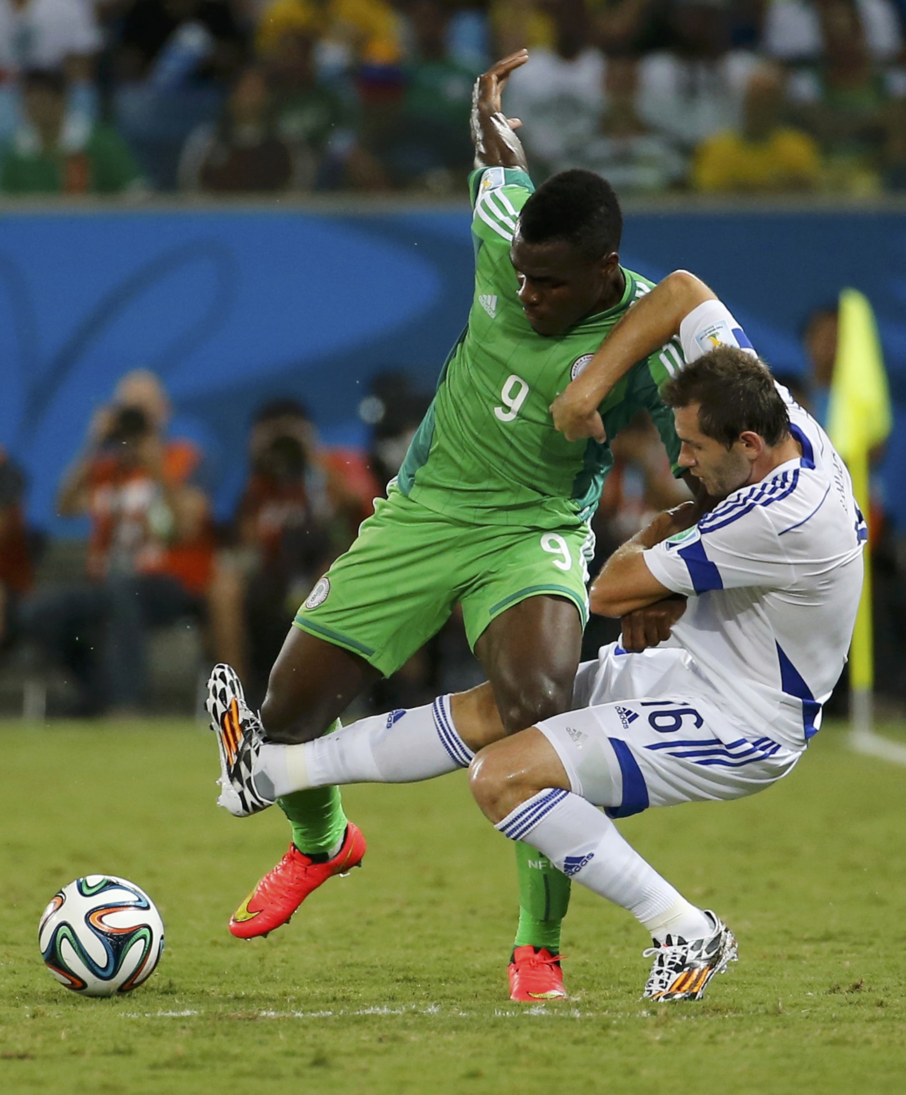 Less than 15 minutes later, Bosnia-Herzegovina was again up in arms over a failure to call a foul on Emenike for bringing down Spahic before he made a pass to Odemwingie for Nigeria's goal.