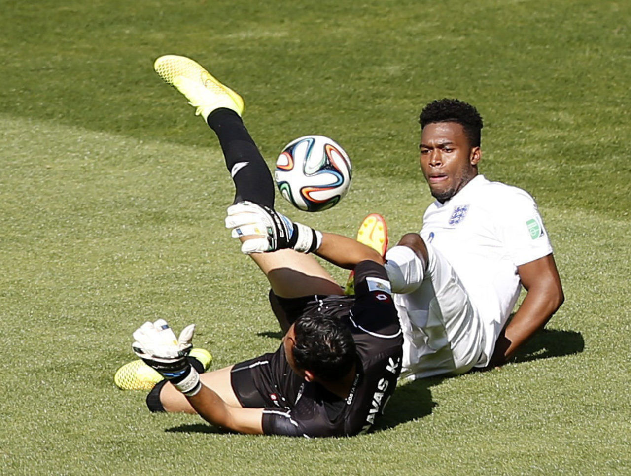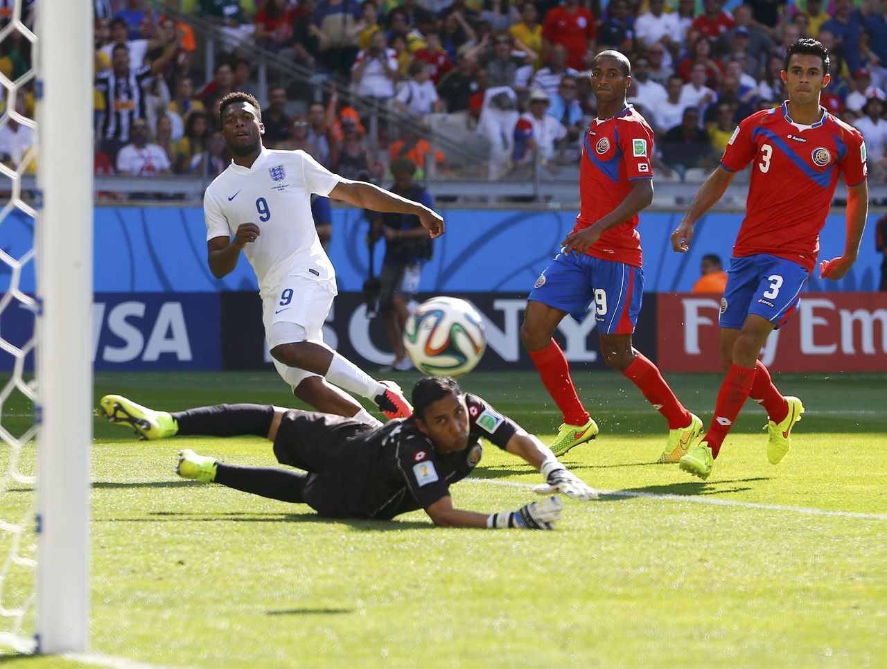 England finally started to turn things around as the half drew to an end. They saw their most promising efforts on goal come from striker Daniel Sturridge, but his long-range shots failed to test keeper Keylor Navas.