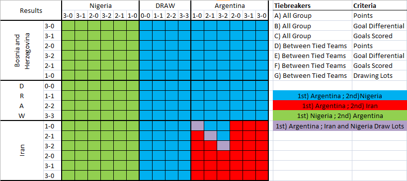 The Iranians need help from Argentina if they're to advance. Not only do they have to beat Bosnia-Herzegovina, they also have to hope that the Argentinians beat Nigeria, and that the combination of scores improve their goal difference enough to surpass Nigeria in the tie-break.